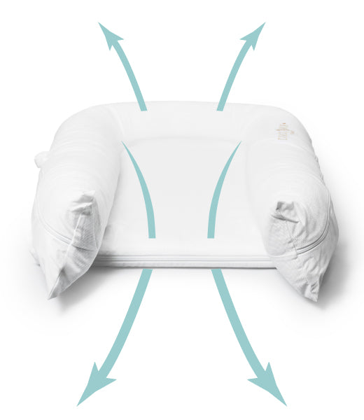 グランドはカバーはもちろん、赤ちゃんが寝るマットレス、チューブクッションと使用されている全てのパーツが通気性に優れた素材で作られています。お子様が寝ている間も熱や湿気を溜め込みません。