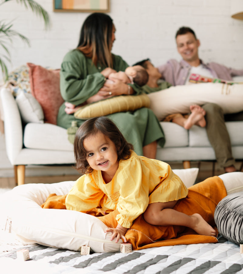赤ちゃんが生まれたらマストアイテムの授乳クッションドッカトットの授乳クッションは使っていない時にリビングに置いていてもおしゃれなので急な来客でも安心。