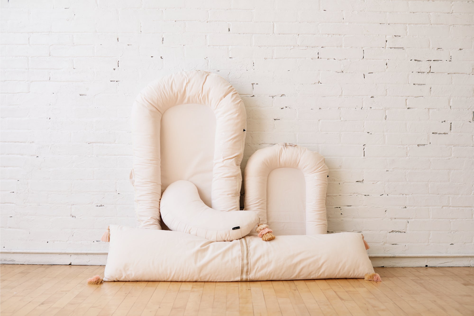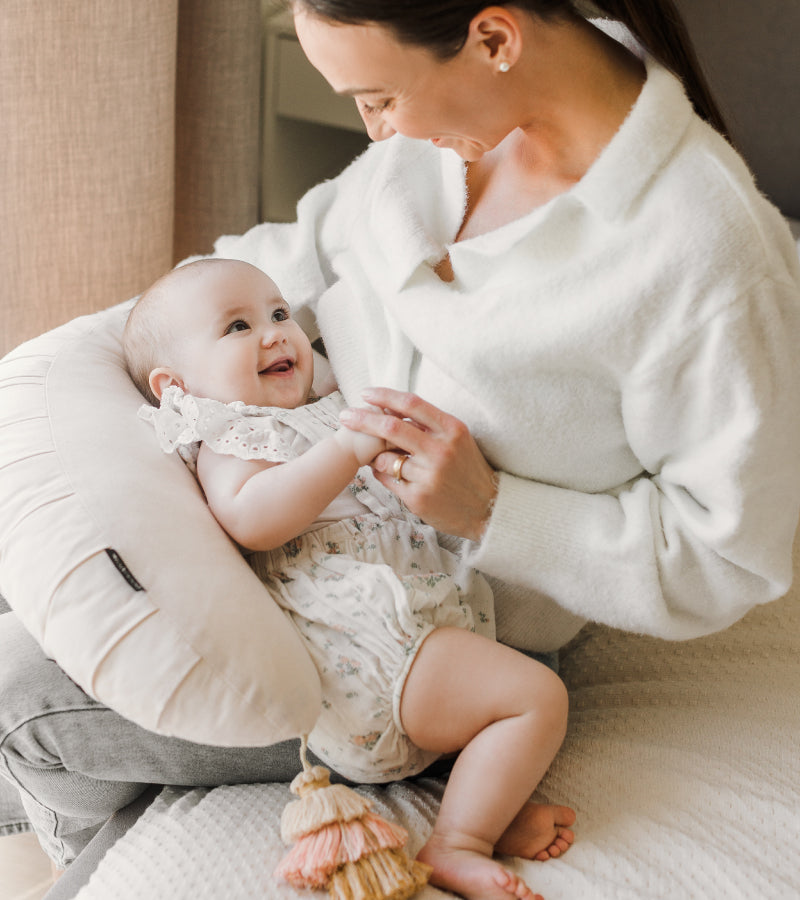 授乳クッションと合わせて使えるデラックスドックは、まるでママのお腹の中のような安心感。赤ちゃんが穏やかに過ごせる空間です。