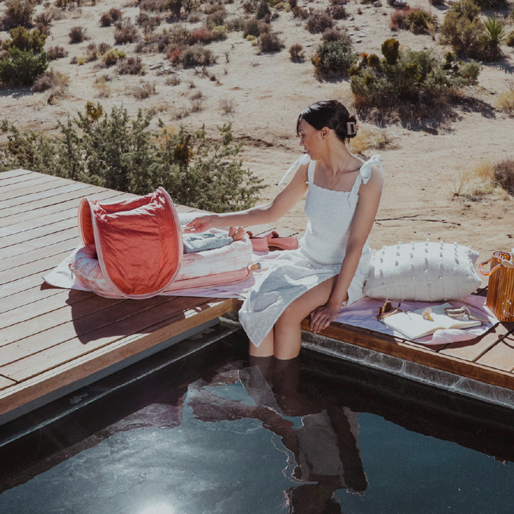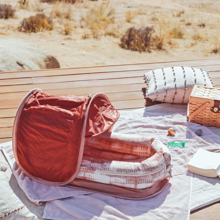 Deluxe +のためだけに作成された、Cabana Kitは、SPF50のUVシェードで赤ちゃんを紫外線から保護し、ビーチ、公園、お庭での時間がさらにリラックスできます。