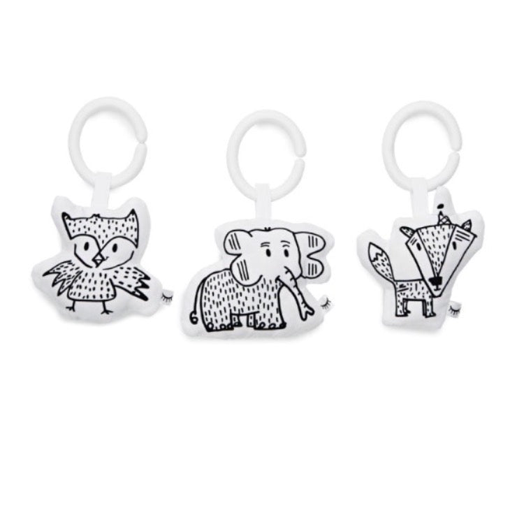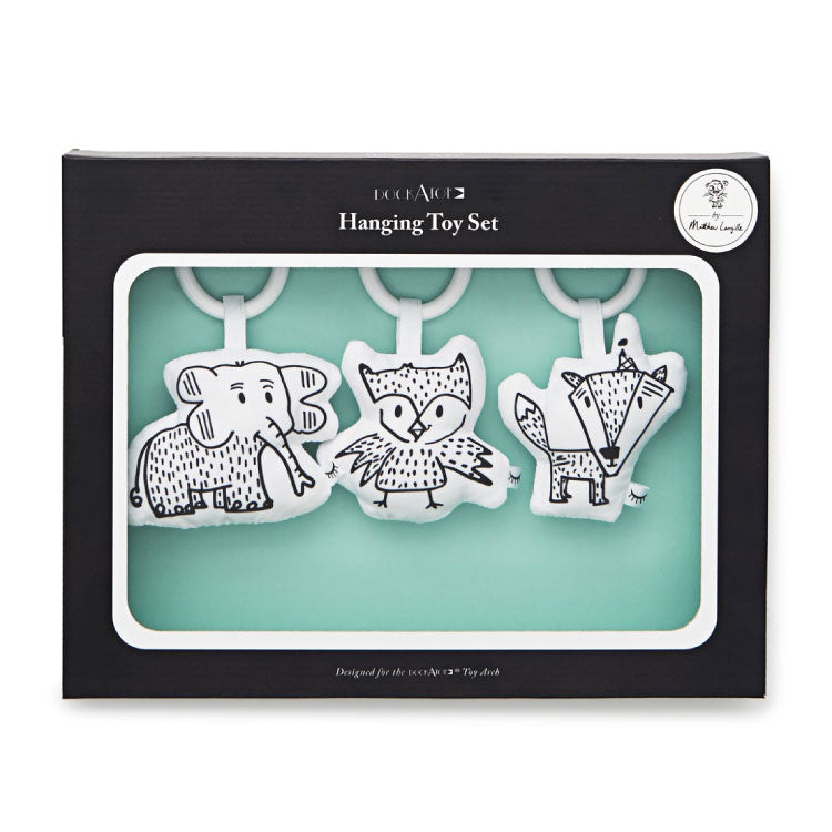 ドッカトットのクールで風変わりなぶら動物のトイセットは、赤ちゃんの世界にダウンタウン、モダンな雰囲気をもたらし、 3つの黒と白のおもちゃは感覚的な発達を促進します。ニューヨークのアーティスト、マシュー・ランギルとのコラボレーションされています。